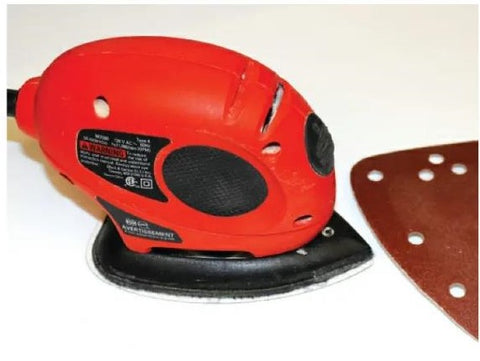 Schwingschleifer: Dieser kleine, handgeführte, elektrische Detailschleifer eignet sich hervorragend zum Glätten von Holzoberflächen vor dem Schleifen. Er spart Ihnen Zeit und Kraft im Vergleich zu Schleifpapier (Schleifpapier ist jedoch eine sinnvolle Alternative, wenn Sie keinen Schwingschleifer besitzen).