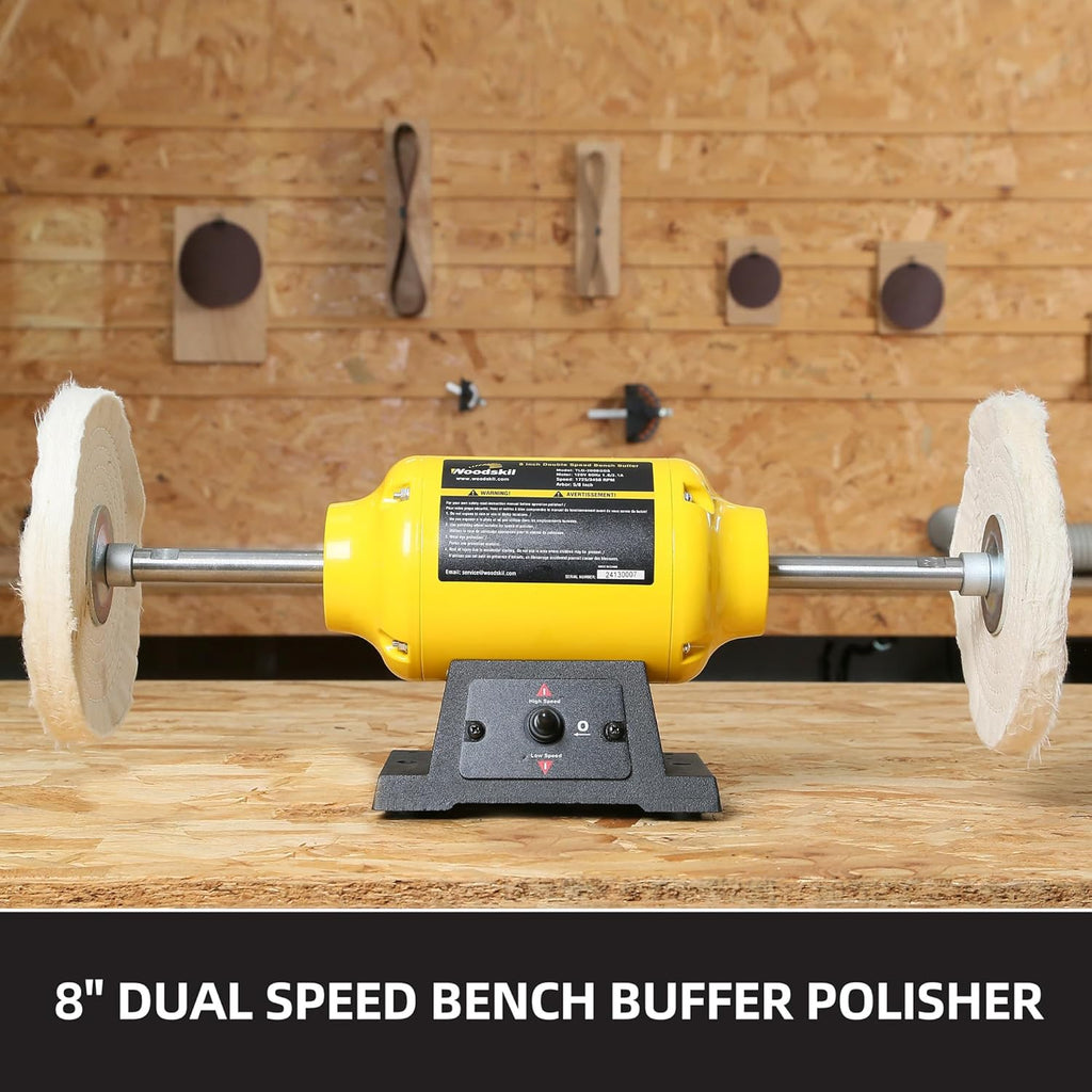 - 8" Dual Cotton Wheels: This buffer polisher machine features dual 8-inch cotton wheels supported by extended long, ball-bearing shafts, allowing you to polish larger surfaces smoothly and achieve a professional mirror finish while saving workspace
