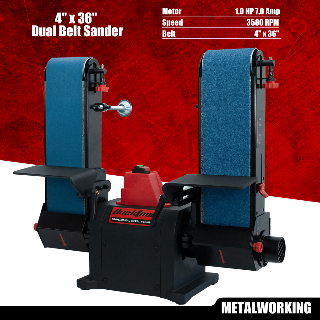Why settle for one? This double-head belt sander features two 4×36-inch belts, allowing you to run different grits (e.g., 80 & 120) simultaneously. This setup is a game-changer for knife makers and fabricators who need to transition from aggressive stock removal to fine finishing without stopping to change belts.